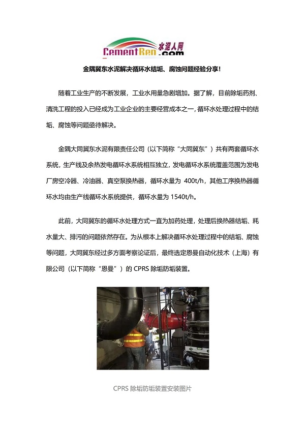 冀东水泥解决循环水结垢、腐蚀问题经验分享!
